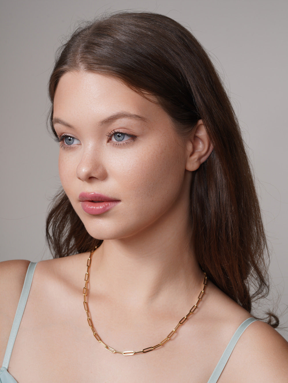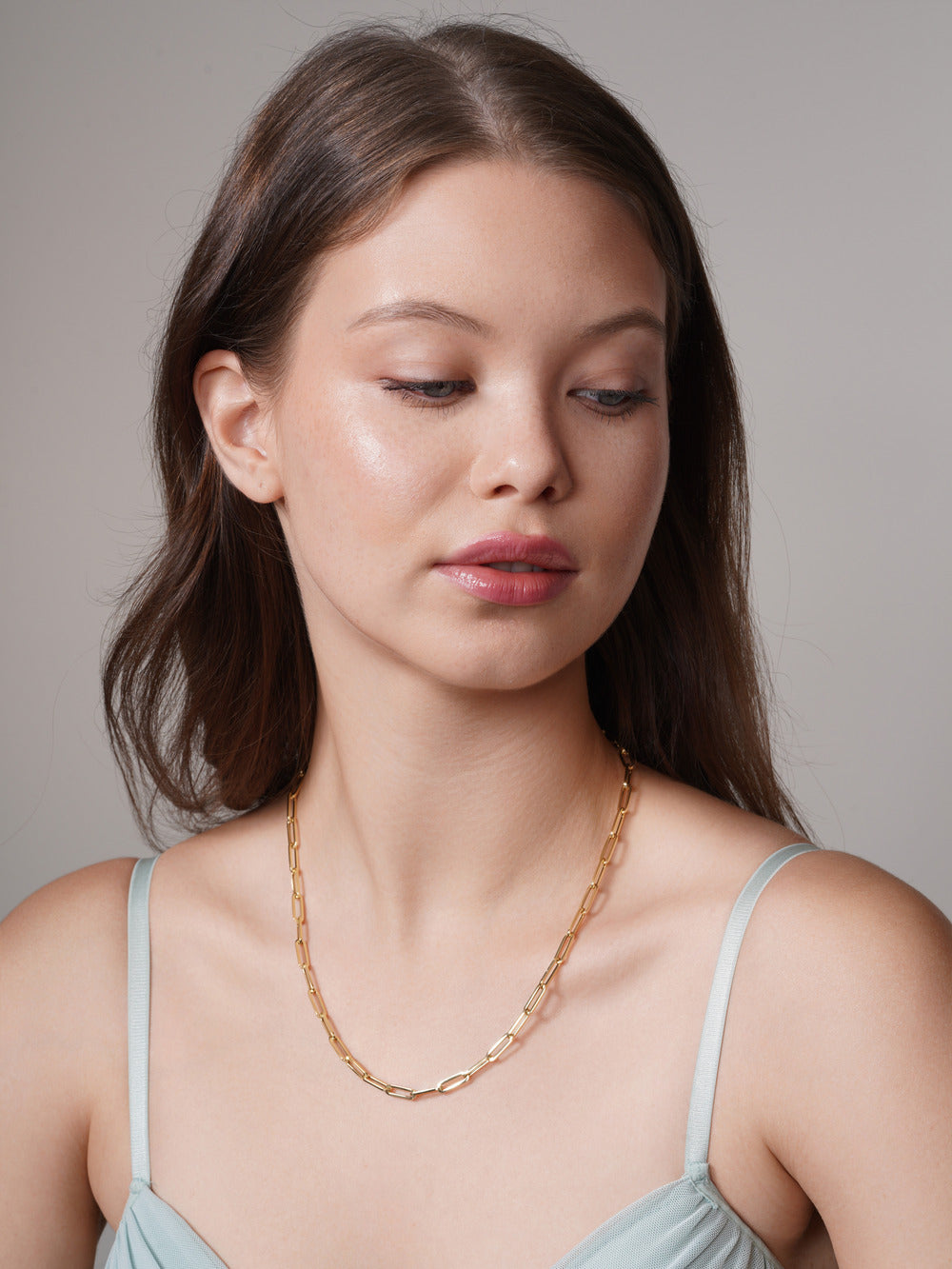 Here's where you'll shine! At the crossroads of elegance & fashionable glam. With our Paperclip Link Chain Necklace,  designed to be a building block—wear alone, or layer with your favorite pendant or a diamond necklace.